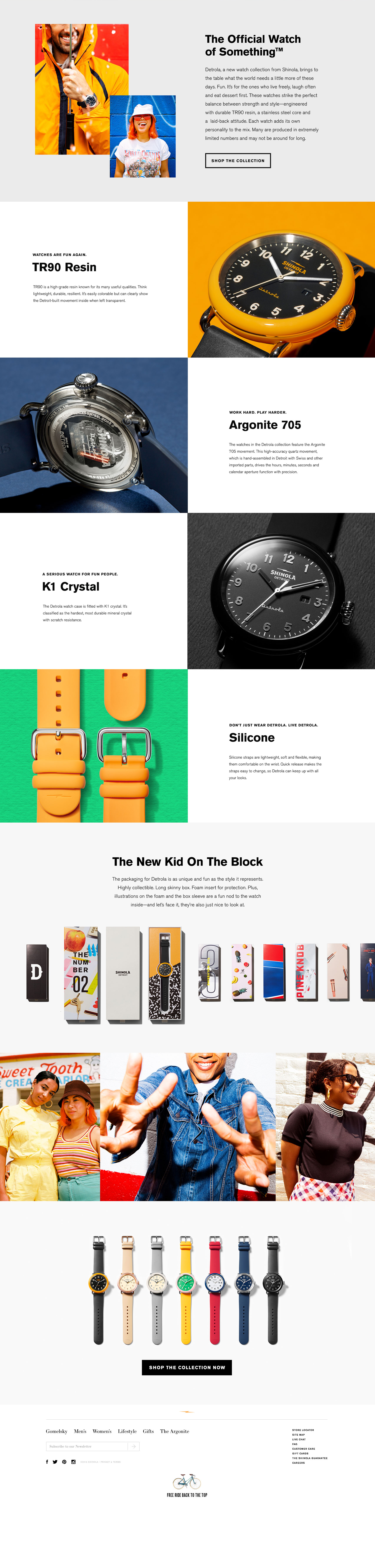 Along with designing the landing page and subsequent web experience for this product, I also art directed the design of printed material and photo production. I also illustrated many of the lead graphics for some of the watches.